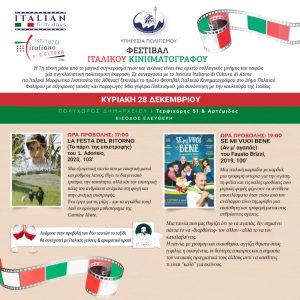 Στις 28 Δεκεμβρίου ο Πολυχώρος θα σβήσει τα φώτα για να παρακολουθήσουμε όλοι μαζί τη λάμψη του Ιταλικού σινεμά¨.