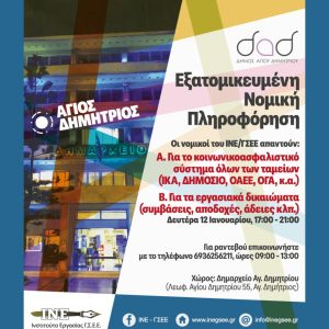 Για να κλείσετε ραντεβού για εξατομικευμένη ΔΩΡΕΑΝ νομική πληροφόρηση με δικηγόρους του ΙΝΕ-ΓΣΕΕ, καλέστε στα τηλέφωνα: 6936256211 (ώρες 09:00 -13:00)