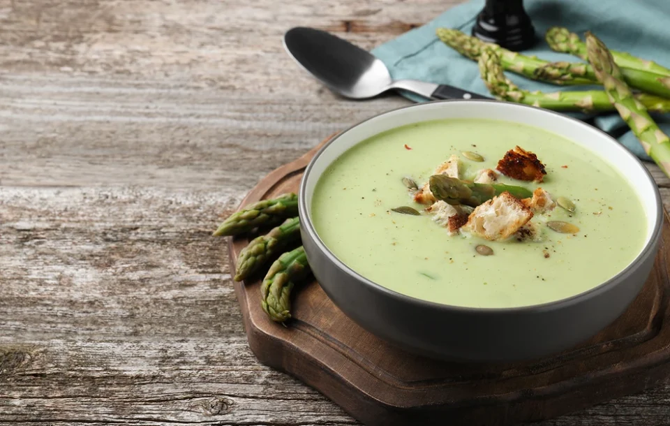 - Προσθέστε τα σπαράγγια και μαγειρέψτε για άλλα δύο λεπτά.