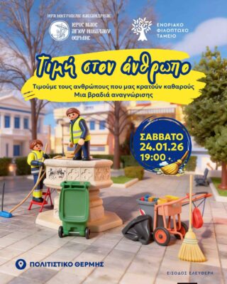 Εκδήλωση αφιερωμένη στους οδοκαθαριστές του Δήμου Θέρμης, ως ελάχιστη ένδειξη ευγνωμοσύνης για την καθημερινή και πολύτιμη προσφορά τους στην πόλη και την τοπική κοινωνία διοργανώνει η Ενορία του Αγίου Νικολάου Θέρμης της Ιεράς Μητροπόλεως Κασσανδρείας.