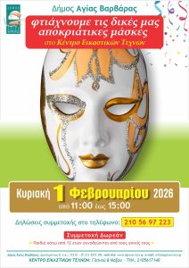ΚεντρικήΚοινωνικάΦτιάχνουμε τις δικές μας αποκριάτικες μάσκες στο Κέντρο Εικαστικών Τεχνών by xristiana26 Ιανουαρίου 202626 Ιανουαρίου 2026011 Share00 26/1/2026