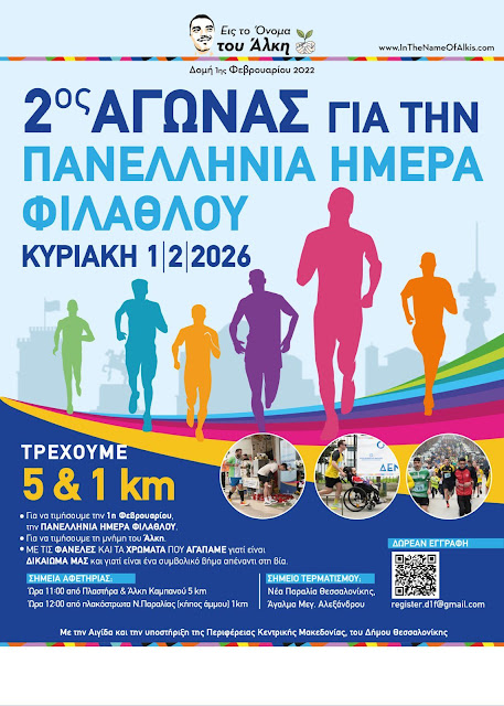 Η Δομή 1ης Φεβρουαρίου 2022 – Εις το Όνομα του Άλκη, ένα μη κερδοσκοπικό σωματείο που λειτουργεί αποκλειστικά με εθελοντισμό, ανακοινώνει με τιμή τη διοργάνωση του 2ου Αγώνα Δρόμου για την Πανελλήνια Ημέρα Φιλάθλου. Μετά την μεγάλη ανταπόκριση και την επιθυμία για επανάληψη, η Δομή προχωρά στη δεύτερη διοργάνωση με σκοπό να δοθεί η ευκαιρία στην κοινωνία να στείλει το ηχηρό μήνυμα ότι «Ο Αθλητισμός Ενώνει, Δεν Σκοτώνει».