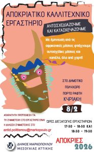 Ο Δήμος Μαρκοπούλου σας προσκαλεί  σε μια ξεχωριστή αποκριάτικη δράση δημιουργίας και φαντασίας.
