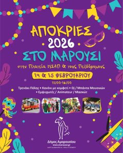 Το Σάββατο 14 και την Κυριακή 15 Φεβρουαρίου, οι πεζόδρομοι και οι πλατείες του Αμαρουσίου ντύνονται αποκριάτικα και μετατρέπονται σε σημεία συνάντησης και διασκέδασης.
