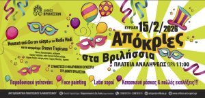 O Δήμος Βριλησσίων γιορτάζει τις απόκριες στην Πλατεία Αναλήψεως, την Κυριακή 15 Φεβρουαρίου 2026 στις 11 το πρωί.