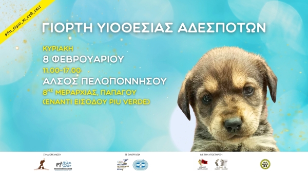 Ο Δήμος Παπάγου-Χολαργού σας προσκαλεί σε γιορτή υιοθεσίας αδέσποτων ζώων που θα πραγματοποιηθεί την Κυριακή 8 Φεβρουαρίου 2026, 11.00 – 17.00 στο Άλσος Πελοποννήσου στου Παπάγου (οδός 8ης Μεραρχίας).