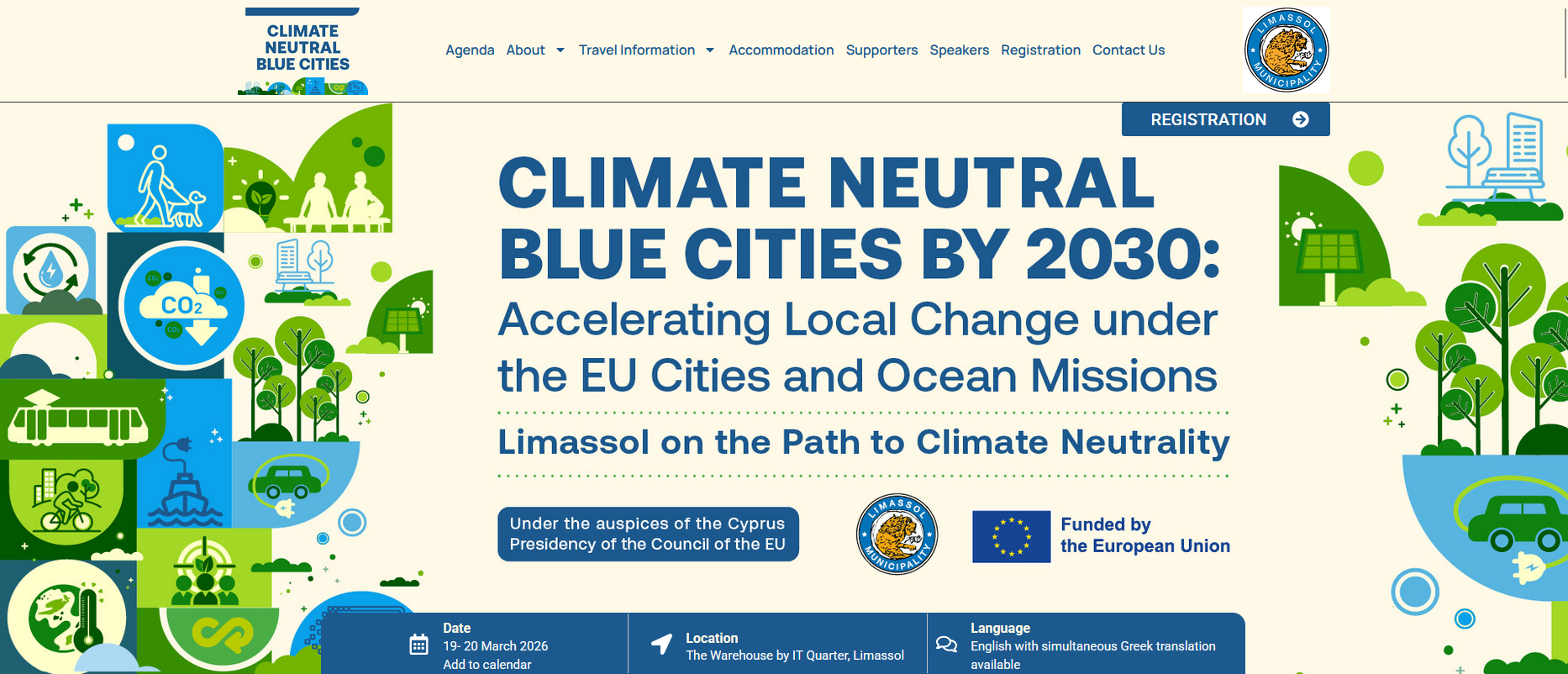 Στις 19–20 Μαρτίου 2026, η Λεμεσός θα φιλοξενήσει στο The Warehouse by IT Quarter το διεθνές συνέδριο «Climate Neutral Blue Cities by 2030: Accelerating Local Change – Η Λεμεσός στην Πορεία για την Κλιματική Ουδετερότητα».
