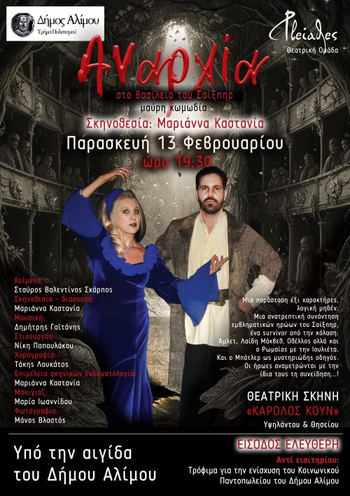 ΚεντρικήΚοινωνικάΔΩΡΕΑΝ ΘΕΑΤΡΙΚΗ ΠΑΡΑΣΤΑΣΗ: «ΑΝΑΡΧΙΑ ΣΤΟ ΒΑΣΙΛΕΙΟ ΤΟΥ ΣΑΙΞΠΗΡ» by xristiana5 Φεβρουαρίου 20265 Φεβρουαρίου 2026022 Share00 5/2/2026