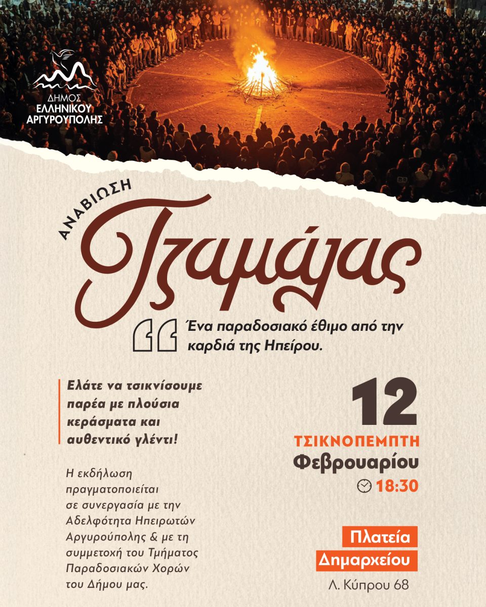 👉Η εκδήλωση πραγματοποιείται σε συνεργασία με την Αδελφότητα Ηπειρωτών Αργυρούπολης και με τη συμμετοχή του Τμήματος Παραδοσιακών Χορών του Δήμου μας.