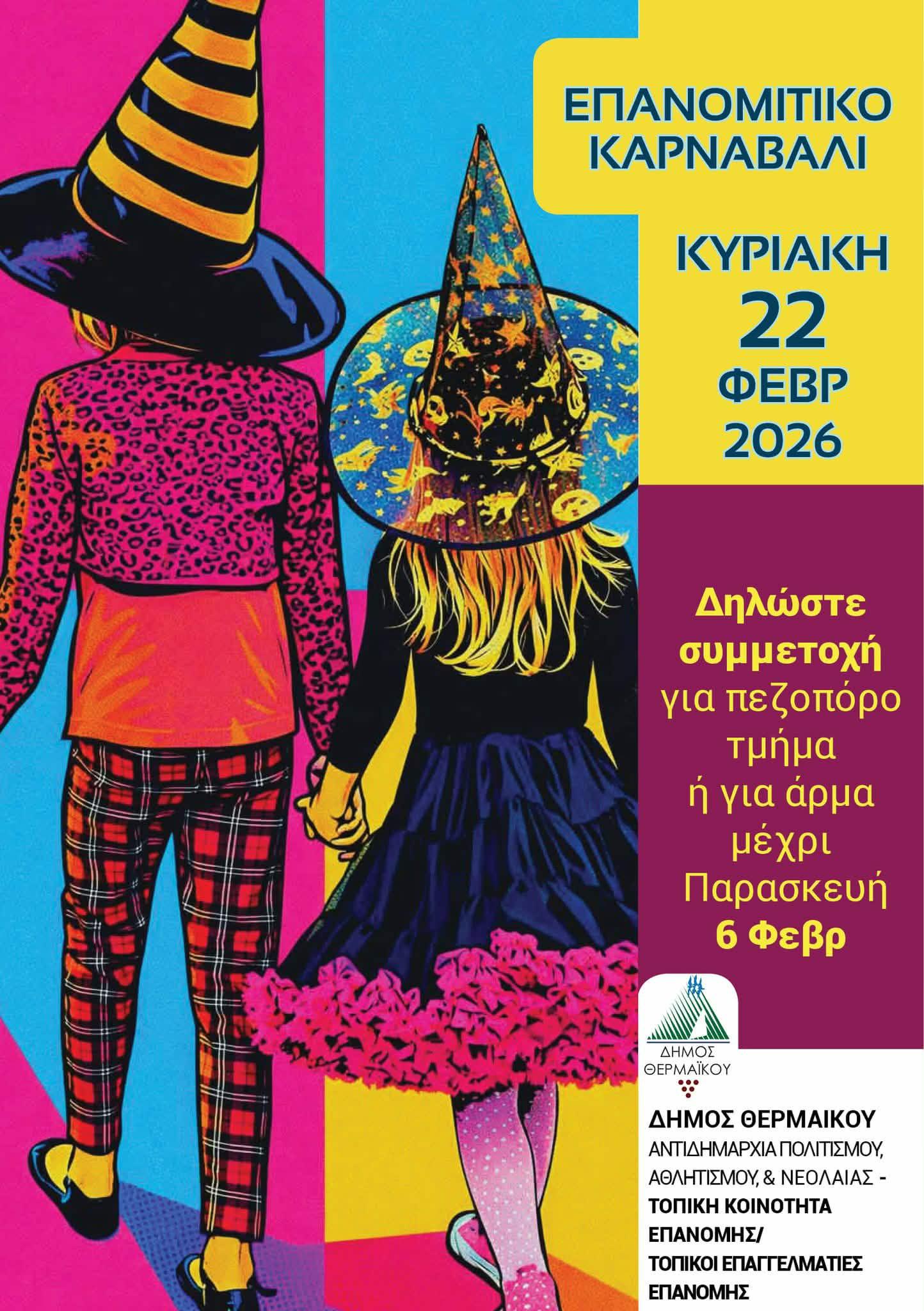 Ο παλμός της Αποκριάς χτυπάει και φέτος δυνατά στην Επανομή! Ο Δήμος Θερμαϊκού, η Τοπική Κοινότητα της Επανομής και οι φορείς της περιοχής φορούν τα γιορτινά τους και σας προσκαλούν στο «Επανομίτικο Καρναβάλι 2026», την Κυριακή 22 Φεβρουαρίου!