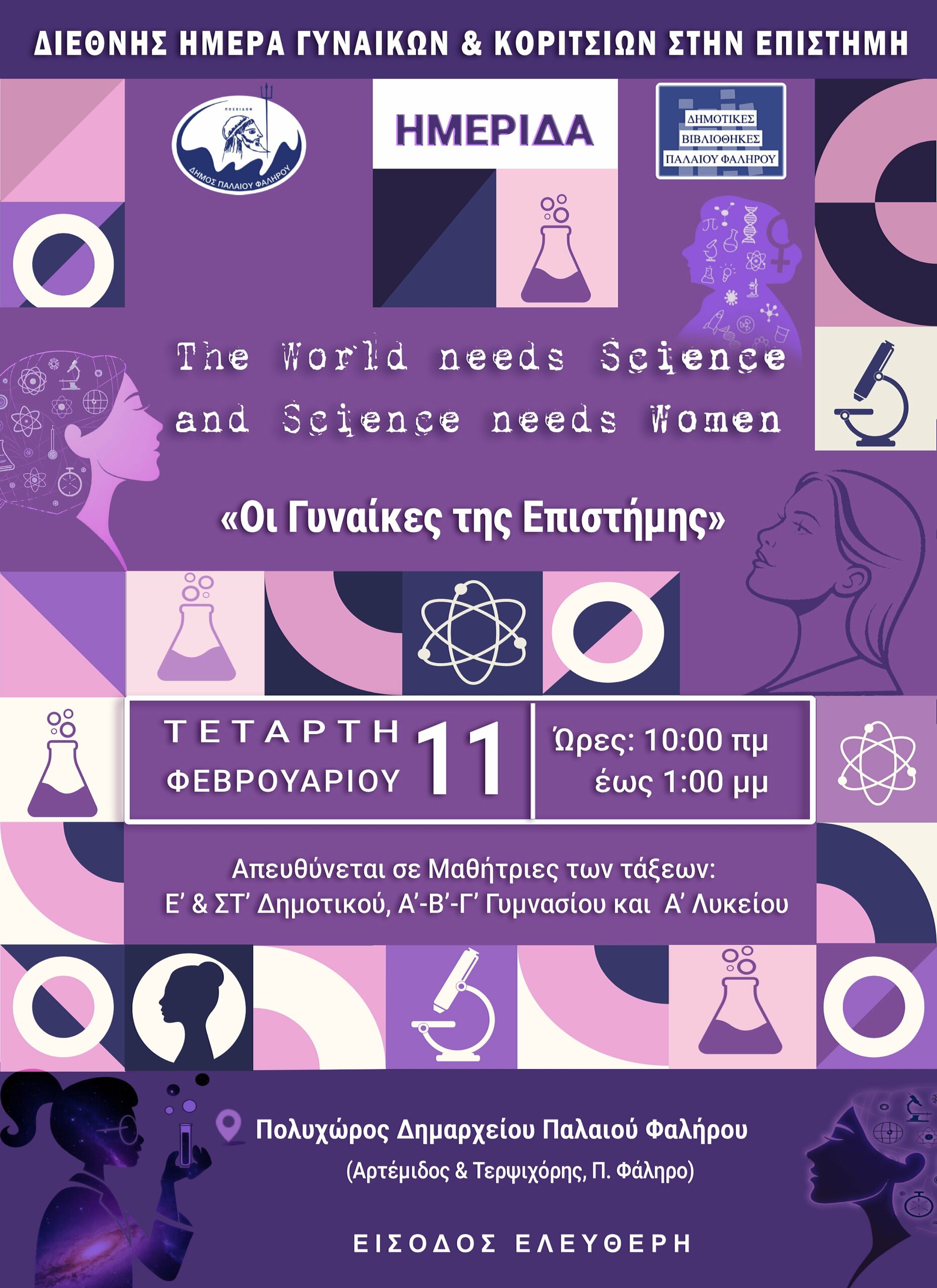Με αφορμή αυτή την επέτειο, ο Δήμος Παλαιού Φαλήρου, με τις Δημοτικές Βιβλιοθήκες Παλαιού Φαλήρου και το Τμήμα Παιδείας , διοργανώνουν ημερίδα που στοχεύει στην ευαισθητοποίηση και στην ενθάρρυνση των νεαρών κοριτσιών /μαθητριών στους τομείς STEM (Science, Technology, Engineering, Mathematics).