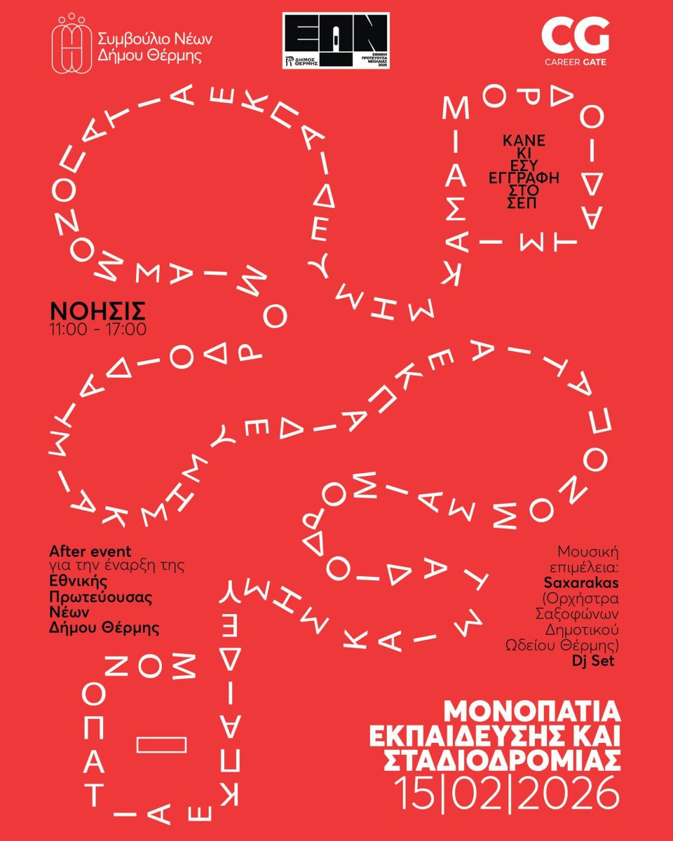 Είσαι μαθητής Γυμνασίου ή Λυκείου; Είσαι γονέας που θέλει να στηρίξει ουσιαστικά τις επιλογές του παιδιού σου; Ο Δήμος Θέρμης και η Διεύθυνση Παιδείας, Νεολαίας, Διά Βίου Μάθησης και Απασχόλησης σας προσκαλούν στη μεγάλη Ημερίδα Σχολικού Επαγγελματικού Προσανατολισμού (ΣΕΠ) η οποία θα πραγματοποιηθεί την Κυριακή, 15 Φεβρουαρίου 2026, στο Κέντρο Διάδοσης Επιστημών και Μουσείο Τεχνολογίας «ΝΟΗΣΙΣ», από 11:00 έως 17:00.