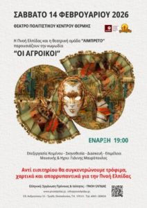 Η Πνοή Ελπίδας, σε συνεργασία με τη θεατρική ομάδα «Λιμπρέτο», παρουσιάζει την κωμωδία «Οι Αγροίκοι», το Σάββατο 14 Φεβρουαρίου 2026, στις 19:00, στο Θέατρο του Πολιτιστικού Κέντρου Δήμου Θέρμης. Πρόκειται για μια ξεχωριστή θεατρική παράσταση με έντονο χιούμορ και κοινωνικές αναφορές, που υπόσχεται να χαρίσει στο κοινό μια απολαυστική θεατρική εμπειρία.