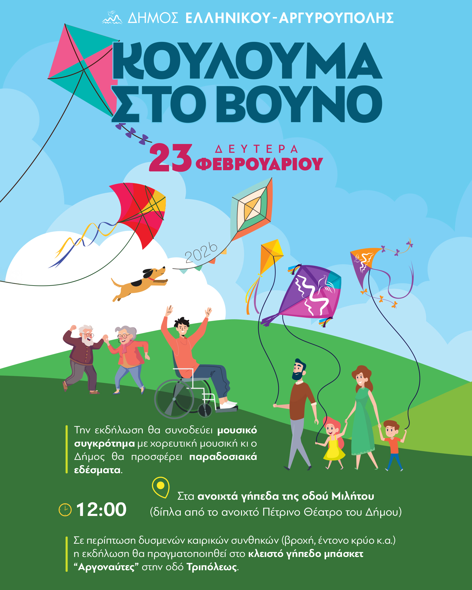 Κούλουμα στο Βουνό – Δευτέρα 23 Φεβρουαρίου στις 12:00 Στα ανοιχτά γήπεδα της οδού Μιλήτου (δίπλα από το ανοιχτό Πέτρινο Θέατρο Αργυρούπολης)