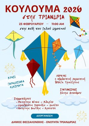 ΚεντρικήΚοινωνικάΚούλουμα στο Δήμο Θεσσαλονίκης by xristiana20 Φεβρουαρίου 202607 Share00 20/2/2026 Με παραδοσιακούς χορούς, τραγούδια και πατροπαράδοτα έθιμα θα γιορταστούν και φέτος, ανήμερα της Καθαράς Δευτέρας, 23 Φεβρουαρίου 2026 , από τις 11:00 π.μ. έως τις 15:00 Στην αυλή του παλιού Δημοτικού Σχολείου Τριανδρίας