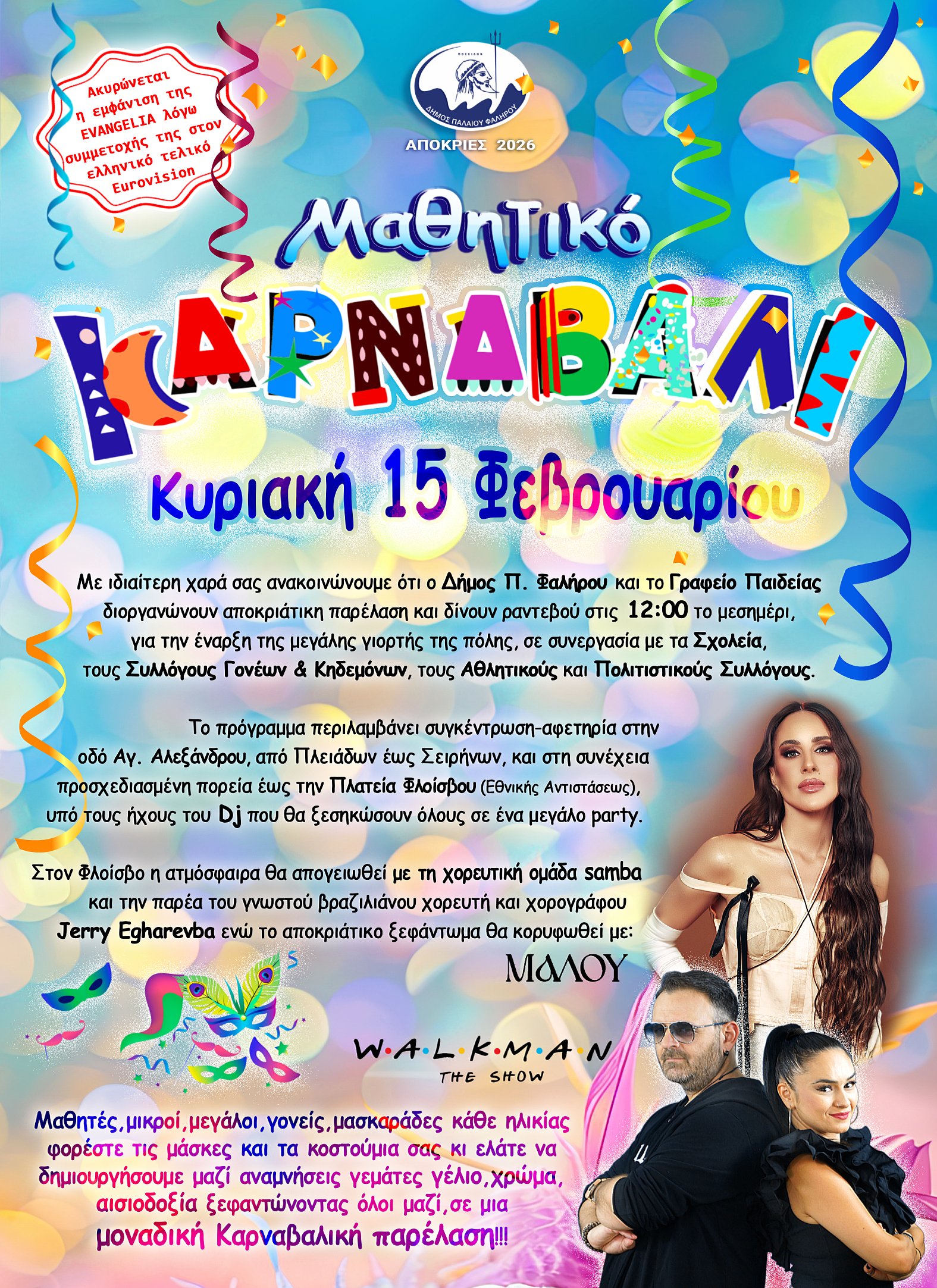 ΚεντρικήΚοινωνικάΜαθητικό Καρναβάλι στον Δήμο Παλαιού Φαλήρου by xristiana14 Φεβρουαρίου 2026010 Share00 14/2/2026