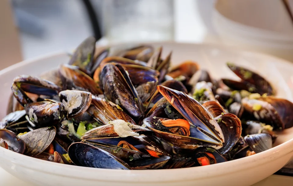 - Μεταφέρετε τα μύδια σε μια μεγάλη πιατέλα, πασπαλίστε με τον ψιλοκομμένο μαϊντανό και σερβίρετε αμέσως με φρέσκο ψωμί.