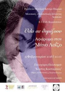 Μια ξεχωριστή συναυλία – αφιέρωμα στον σπουδαίο μουσικοσυνθέτη Μάνο Λοΐζο και την προσφορά του στο έντεχνο λαϊκό τραγούδι, θα πραγματοποιηθεί τη Δευτέρα 9 Φεβρουαρίου 2026, στις 20:00, στον Πολιτιστικό Πολυχώρο «Κώστας Κωσταράκος», στα Καμίνια (Θήρας και Μαντινείας 4), με ελεύθερη είσοδο.