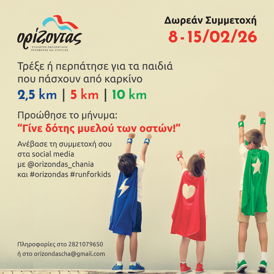 Ο Σύλλογος Ορίζοντας, με αφορμή την Παγκόσμια Ημέρα κατά του Παιδικού Καρκίνου, ανακοινώνει τη διεξαγωγή ενός συμβολικού Virtual Αγώνα Δρόμου και Δυναμικού Περπατήματος.