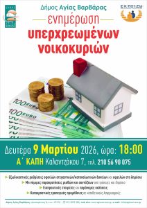 Ο Δήμος Αγίας Βαρβάρας σε συνεργασία με την ΕΚΠΟΙΖΩ διοργανώνει εκδήλωση τη Δευτέρα 9 Μαρτίου 2026 και ώρα 18:00 στο Α’ ΚΑΠΗ (Καλαντζάκου 7, Αγία Βαρβάρα), με θέμα: