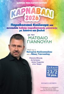 O Δήμος Μοσχάτου-Ταύρου γιορτάζει την Καθαρά Δευτέρα με παραδοσιακό τρόπο και συναυλία με τον Ματθαίο Γιαννούλη
