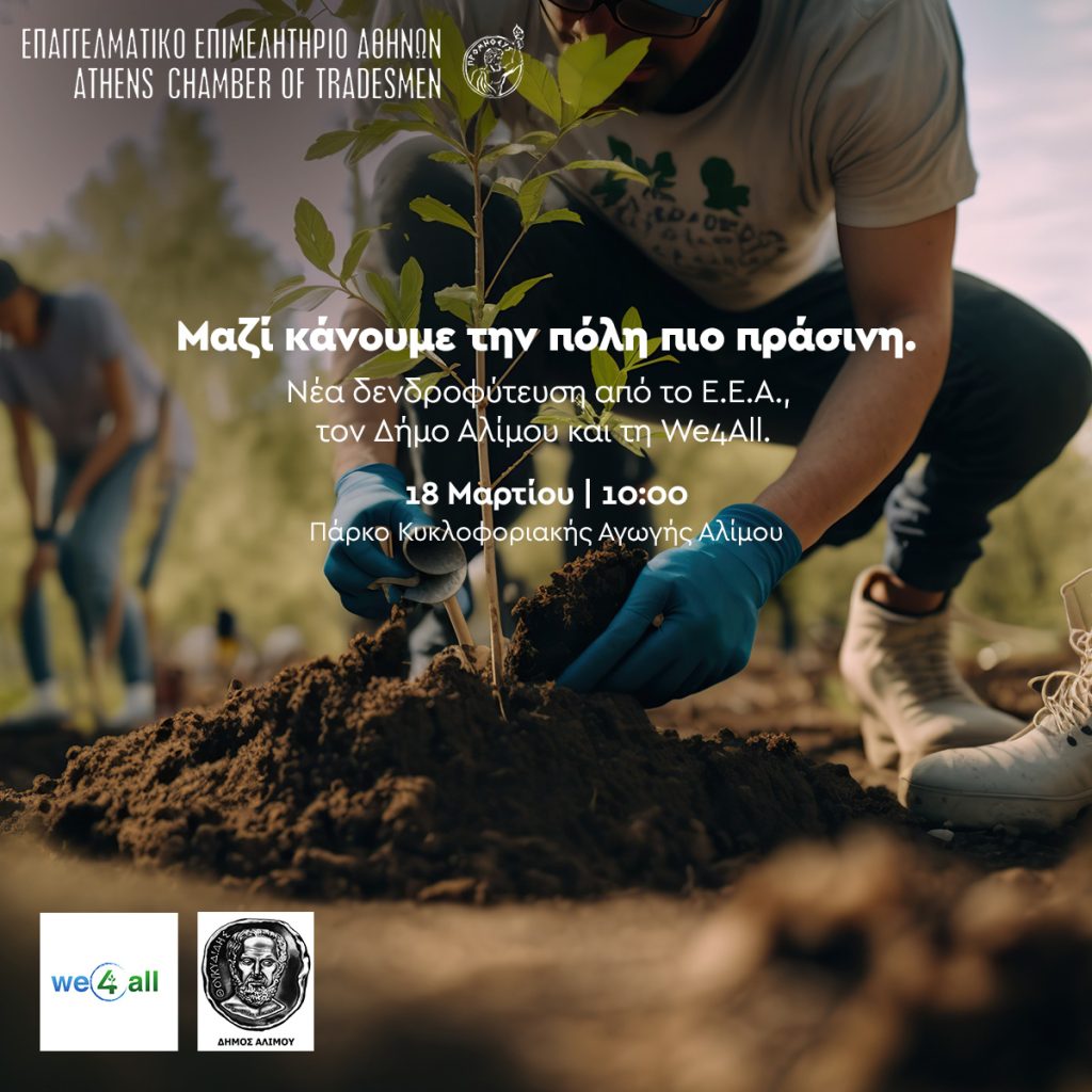 Ο Δήμος Αλίμου, σε συνεργασία με το Επαγγελματικό Επιμελητήριο Αθηνών και την περιβαλλοντική οργάνωση We4All, διοργανώνει δράση δενδροφύτευσης στο Πάρκο Κυκλοφοριακής Αγωγής Αλίμου την Τετάρτη 18 Μαρτίου στις 10 το πρωί.