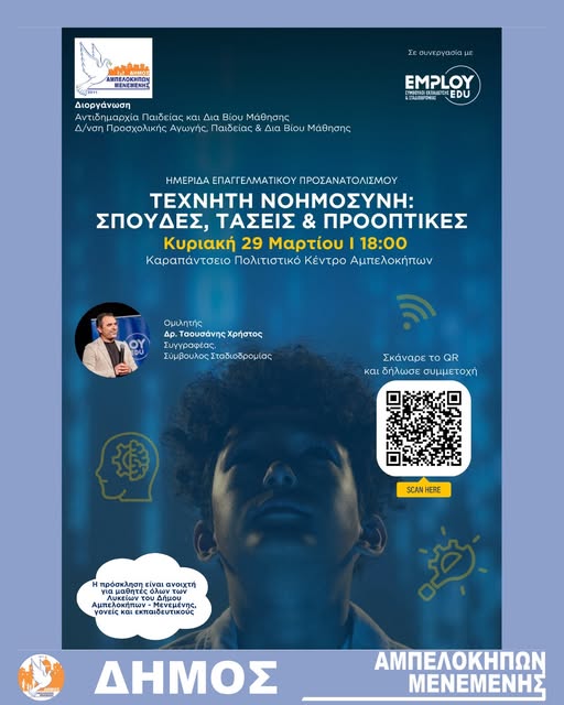 Ο Δήμος Αμπελοκήπων-Μενεμένης σε προσκαλεί στην Ημερίδα Επαγγελματικού Προσανατολισμού με θέμα: