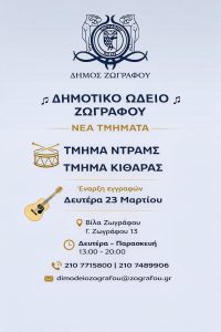 Το Δημοτικό Ωδείο Ζωγράφου, από το εαρινό εξάμηνο 2026, θα λειτουργήσει δύο επιπλέον τμήματα: