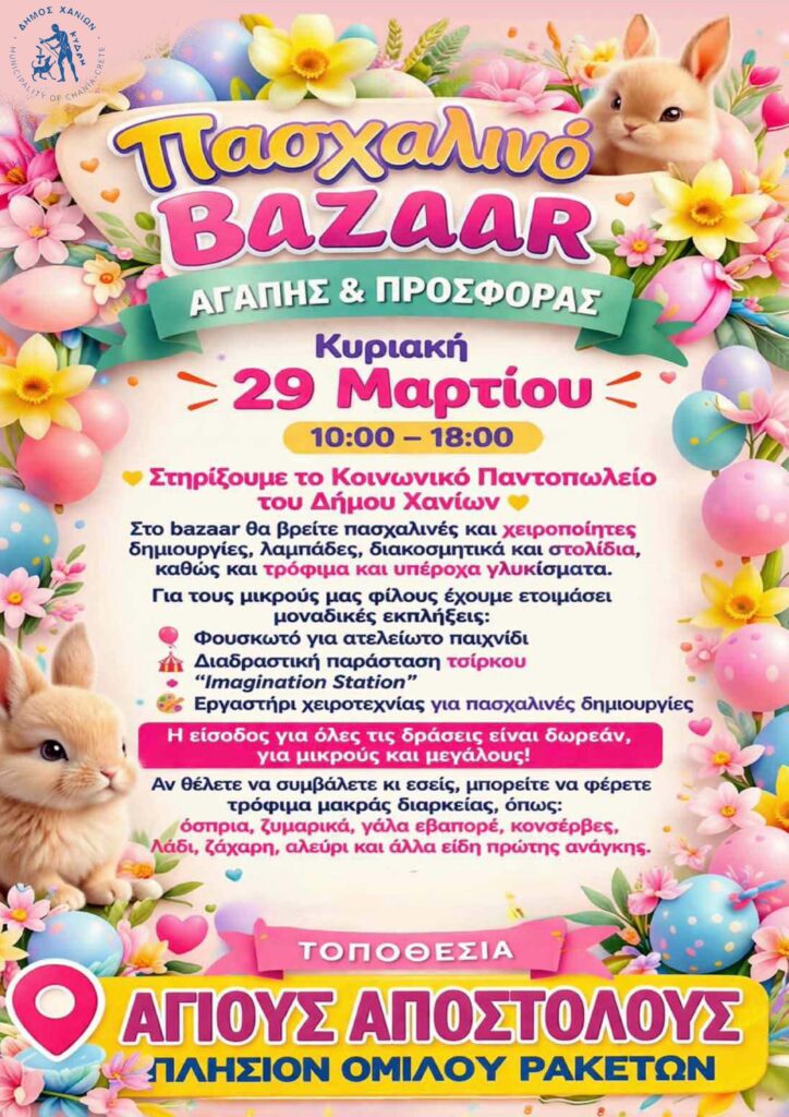 Πασχαλινό Bazaar αγάπης και προσφοράς Κυριακή 29 Μαρτίου 2026, στο άλσος των Αγίων Αποστόλων (πλησίον Ομίλου Ρακετών), 10:00 – 18:00