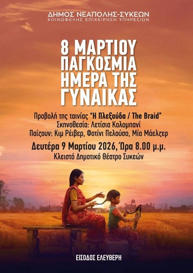 Ο Δήμος Νεάπολης-Συκεών και η Κοινωφελής Επιχείρηση Υπηρεσιών τιμούν την Παγκόσμια Ημέρα της Γυναίκας με την προβολή της συγκλονιστικής ταινίας «Η Πλεξούδα / The Braid».