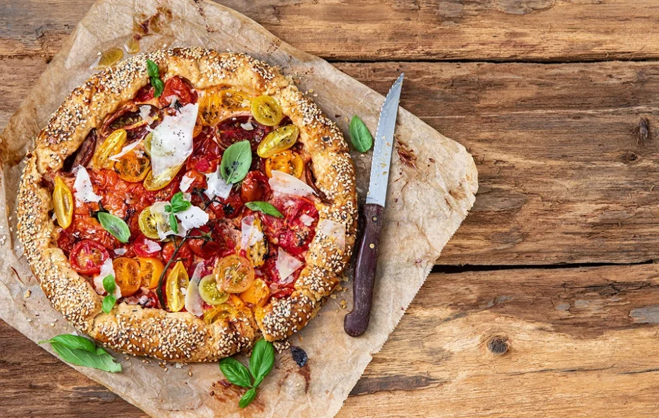 - Αφήστε να κρυώσει σε θερμοκρασία δωματίου και αλείψτε τον πάτο της κρούστας με το πέστο.