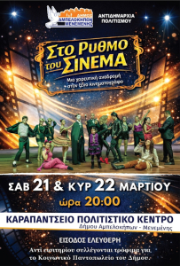 Η Αντιδημαρχία Πολιτισμού του Δήμου Αμπελοκήπων – Μενεμένης προσκαλεί το κοινό σε μια μοναδική καλλιτεχνική παράσταση με τίτλο «Στο Ρυθμό του Σινεμά».