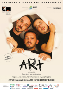 Το Κέντρο Πολιτισμού της Περιφέρειας Κεντρικής Μακεδονίας, σε συνεργασία με την Περιφερειακή Ενότητα Πιερίας, φέρνει στο κοινό της Κατερίνης την πολυβραβευμένη κωμωδία-φαινόμενο «ART» της Γιασμίνας Ρεζά. Πρόκειται για μια παράσταση που έχει σπάσει τα ταμεία παγκοσμίως και συνεχίζει να γοητεύει το κοινό με την ευφυή προσέγγιση της φιλίας και της σύγχρονης τέχνης.