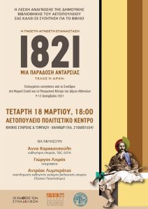 Ενημερώνουμε τους πολίτες ότι στην επόμενη Λέσχη Ανάγνωσης θα συζητηθεί το βιβλίο «1821: Μια Παράδοση Ανταρσίας – Τέλος ή Αρχή;».