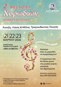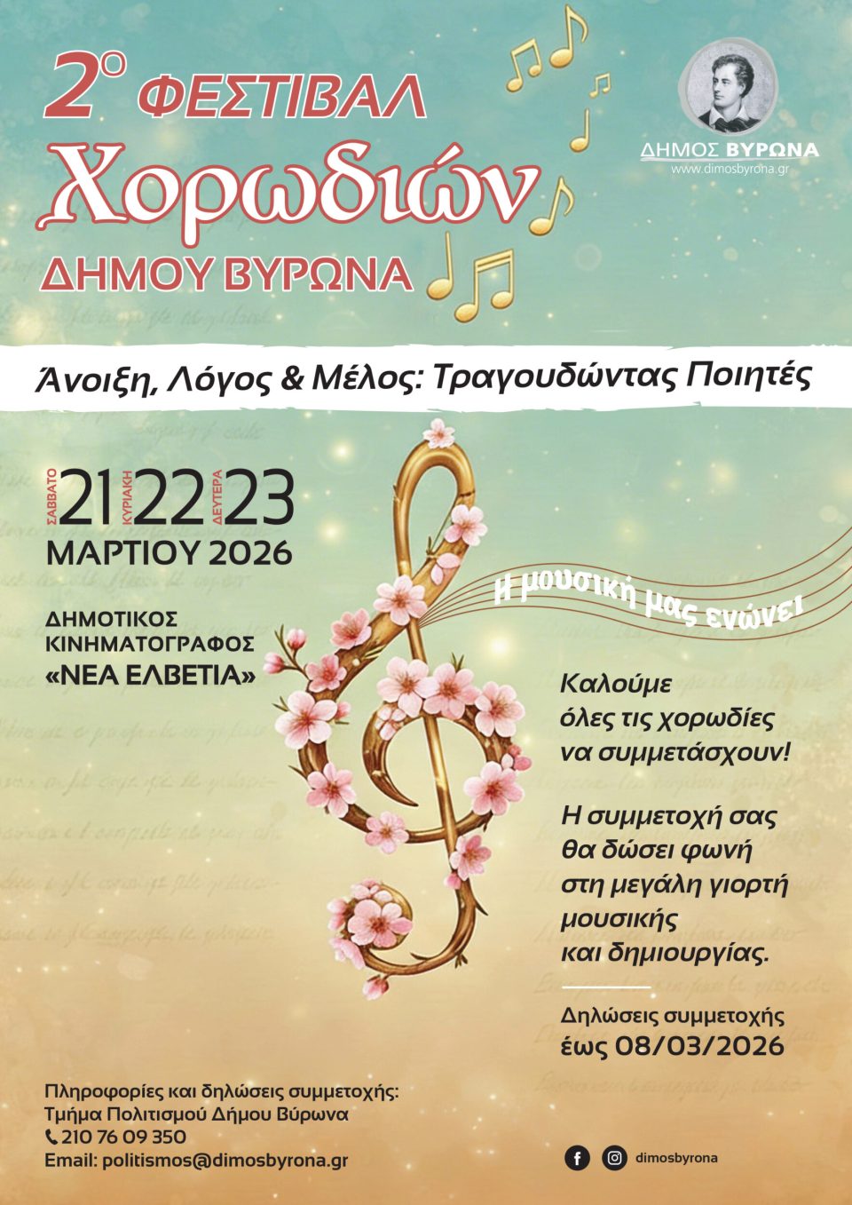 Ο Δήμος Βύρωνα καλεί χορωδίες από όλη την Ελλάδα να δηλώσουν συμμετοχή και να γίνουν μέρος αυτής της γιορτής, της μουσικής και της ποίησης.