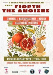 Η άνοιξη έφτασε και η Κοιν.Σ.Επ. «Τρελή Ροδιά» σας προσκαλεί σε μια ολοήμερη γιορτή γεμάτη χρώματα, γεύσεις και δημιουργία!