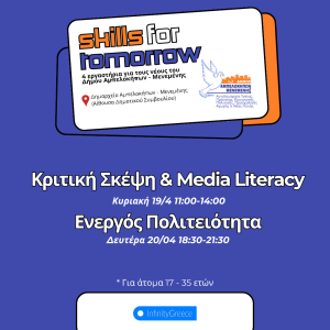 • Κριτική Σκέψη & Media Literacy: Κυριακή 19 Απριλίου, ώρες 11:00–14:00