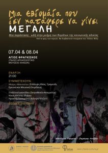 Μια ιδιαίτερη μουσικο-ποιητική εκδήλωση μνήμης και τιμής θα πραγματοποιηθεί την Μεγάλη Τρίτη 7 και Μεγάλη Τετάρτη 8 Απριλίου στον Ιερό Ναό Αγίου Φραγκίσκου (Παλιό αρχαιολογικό Μουσείο) στα Χανιά.