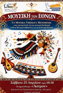 Η εκδήλωση θα πραγματοποιηθεί το Σάββατο 25 Απριλίου στις 18:30 στο Κινηματοθέατρο «Άστρον» στη Μενεμένη.