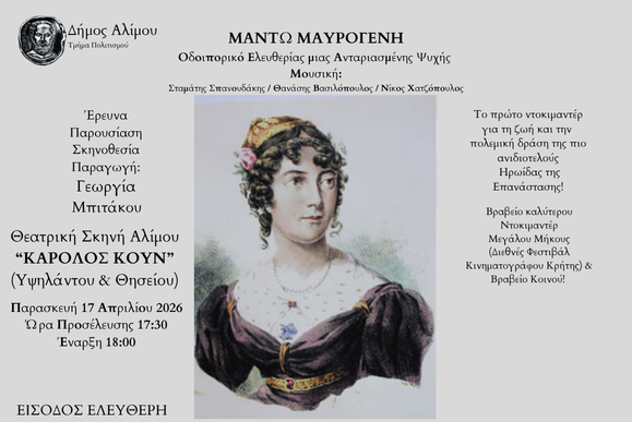 Την Παρασκευή 17 Απριλίου 2026, θα προβληθεί το πρώτο ντοκιμαντέρ για τη ζωή και την πολεμική δράση της Μαντούς Μαυρογένη, σε έρευνα, παρουσίαση, σκηνοθεσία και παραγωγή της Γεωργίας Μπιτάκου.