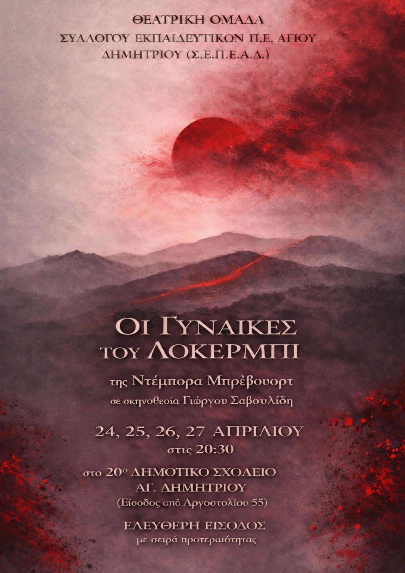 • Χώρος: Αίθουσα Εκδηλώσεων 20ου Δημοτικού Σχολείου Αγίου Δημητρίου