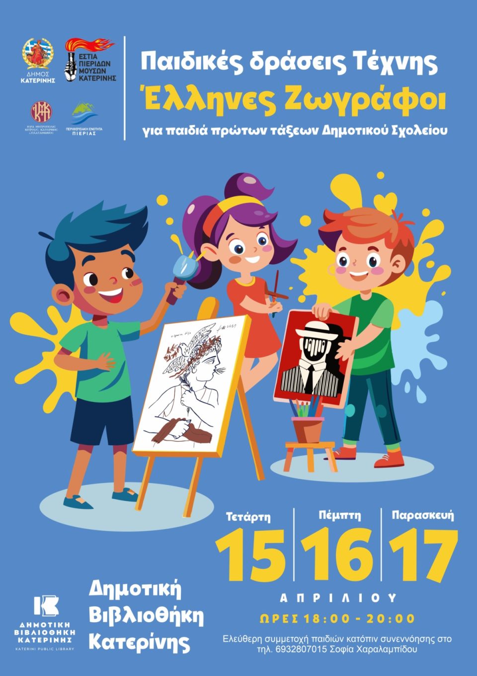 Η Δημοτική Βιβλιοθήκη Κατερίνης, σε συνεργασία με την Εστία Πιερίδων Μουσών, προσκαλεί τους μικρούς μας φίλους σε ένα μοναδικό ταξίδι στον κόσμο του χρώματος και της δημιουργίας!