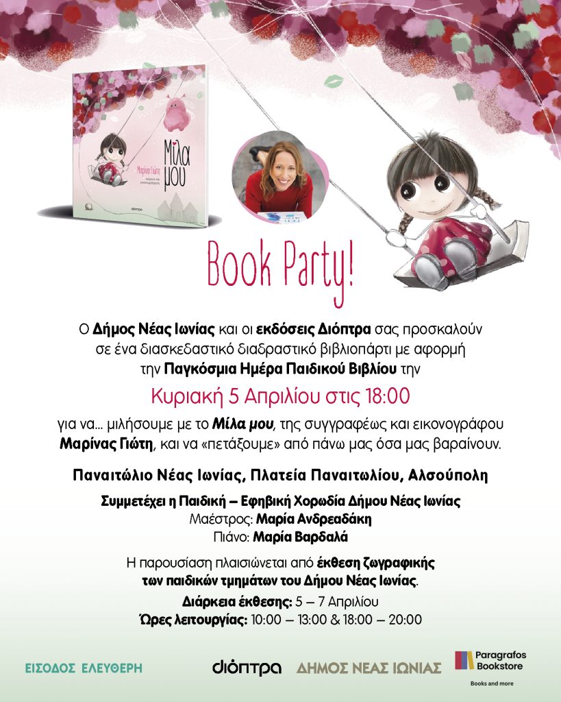 Ο Δήμος Νέας Ιωνίας και οι εκδόσεις Διόπτρα προσκαλούν τα παιδιά σε ένα διαδραστικό βιβλιοπάρτι με αφορμή την Παγκόσμια Ημέρα Παιδικού Βιβλίου!