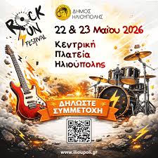 Ο Δήμος Ηλιούπολης προσκαλεί τα μαθητικά και νεανικά μουσικά σχήματα της πόλης μας να συμμετάσχουν στο RockSun Fest 2026, το οποίο θα πραγματοποιηθεί στις 22 και 23 Μαΐου στην Κεντρική Πλατεία της πόλης.