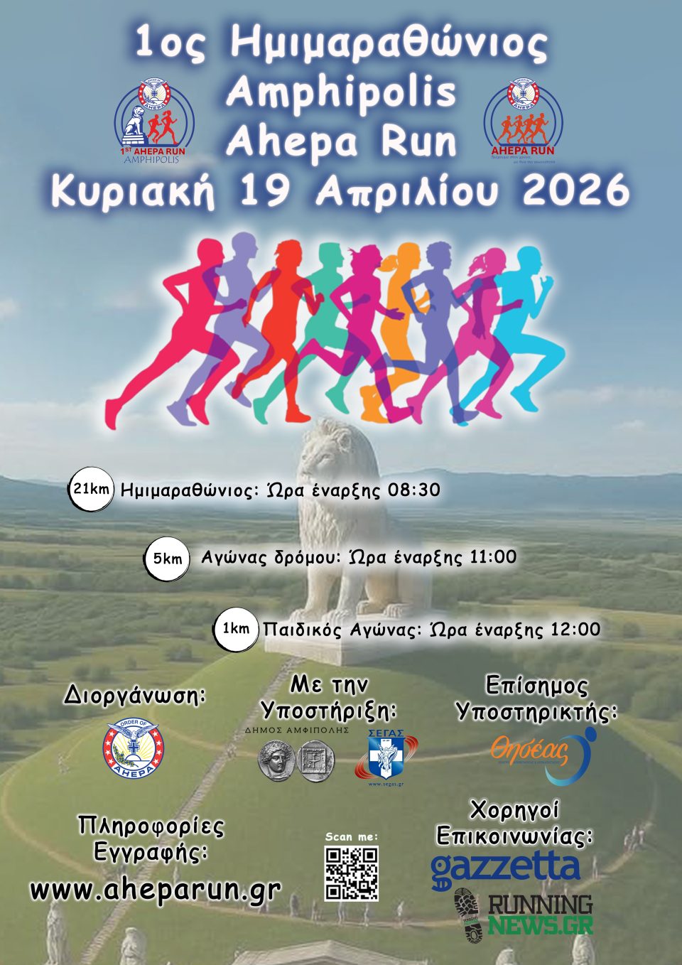 Σε συνεργασία με τον Δήμο Αμφίπολης και με τη συμμετοχή της ΕΑΣ ΣΕΓΑΣ Ανατολικής Μακεδονίας & Θράκης, το 1ο “’AMPHIPOLIS AHEPA RUN ” θα πραγματοποιηθεί την Κυριακή 19 Απριλίου 2026, στον εμβληματικό αρχαιολογικό χώρο της Αμφίπολης (Χώρος ΟΣΕ).