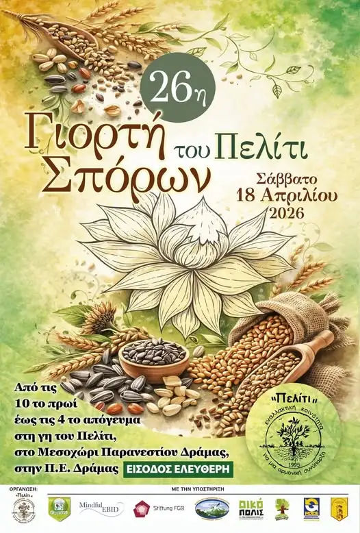 Η 26η Γιορτή Σπόρων του Πελίτι το Σάββατο 18 Απριλίου 2026 στη Γη του Πελίτι, στο Μεσοχώρι Παρανεστίου Δράμας, αφιερώνετε στο πώς να διαχειριστούμε το οικονομικό κραχ που είναι σε εξέλιξη.